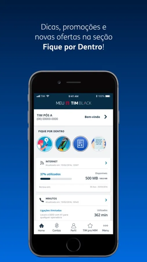 - Dicas, promoções e novidades na seção Fique por Dentro, além de benefícios exclusivos do programa TIM pra MIM.
