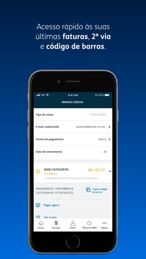 - Gestão da fatura: 2ª via e código de barras em 1 click.
