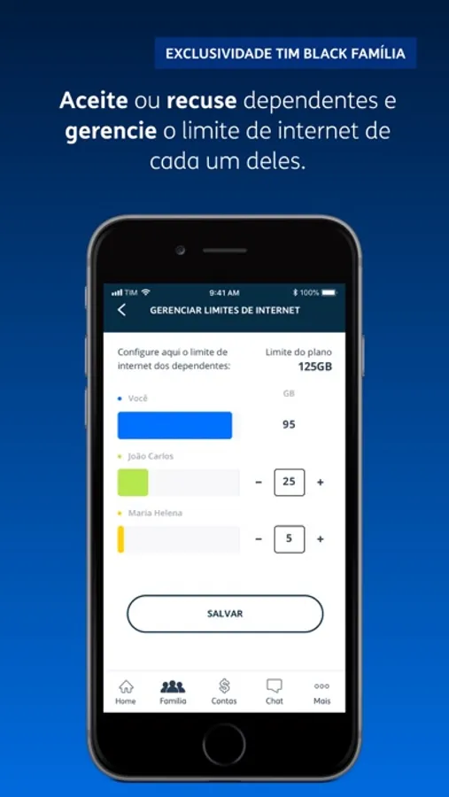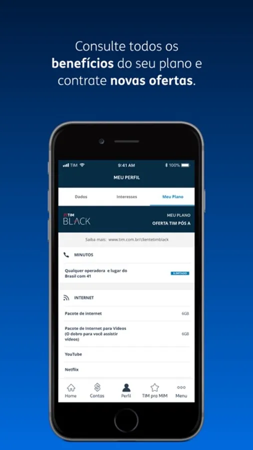- Clientes TIM Black Família: gestão do plano, dos dependentes e acesso a uma loja de serviços exclusiva.