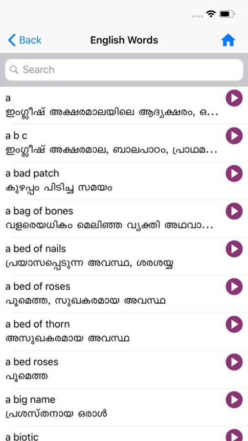 This is the best bilingual English Malayalam dictionary mobile app optimized for your iOS devices. In this app you can easily search for English and Malayalam word meanings. This Malayalam dictionary app contains Malayalam proverbs and useful words. We are also providing Antonyms and Synonyms with Malayalam meanings.