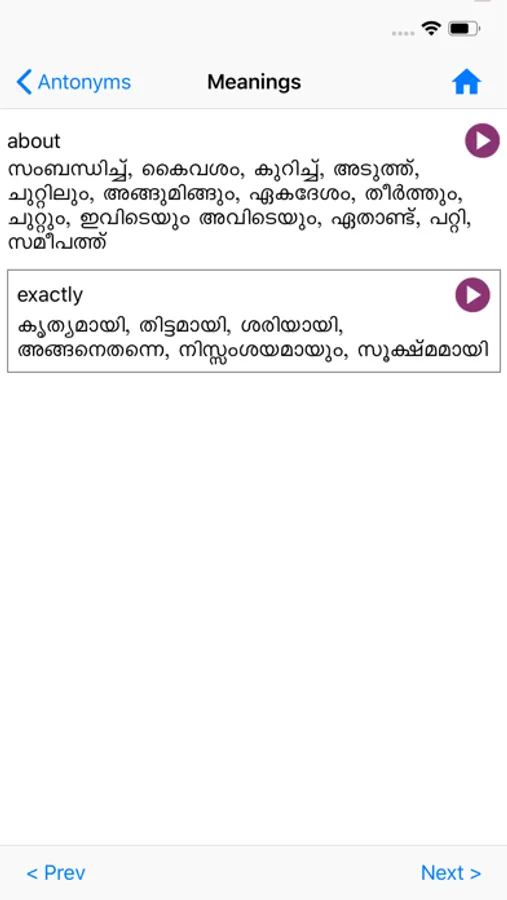 * Easy navigation (Next & Prev) buttons in the Meanings