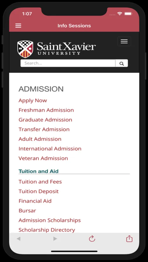 Download Saint Xavier University's mobile app today to apply to SXU, sign up for upcoming information sessions, stay on top of academics and grades, and keep up with news and events.
