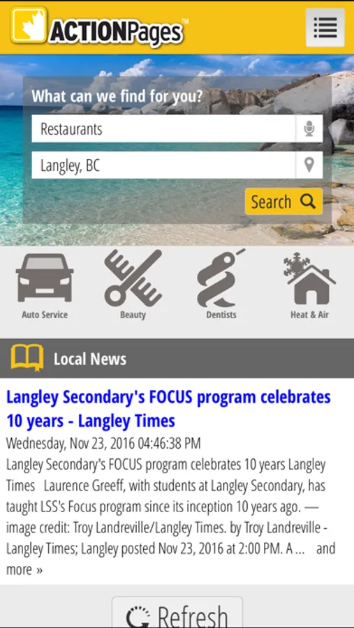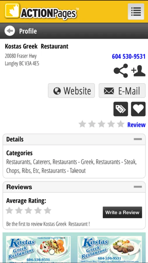 •View detailed information on a business; this may include: addresses, phone numbers, email addresses, website URL’s, hours of operation, services, products, specialties, videos, photo montages and display ads (where available).