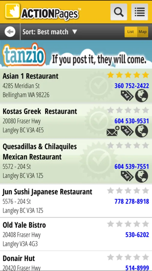Find local businesses or residential listing by toggling between a list-view and map-view, get directions, click-to-call a business, browse business' websites, and find enhanced information on business profile pages. You can also search for business types closest to you using GPS and then get instant turn by turn directions to any location.