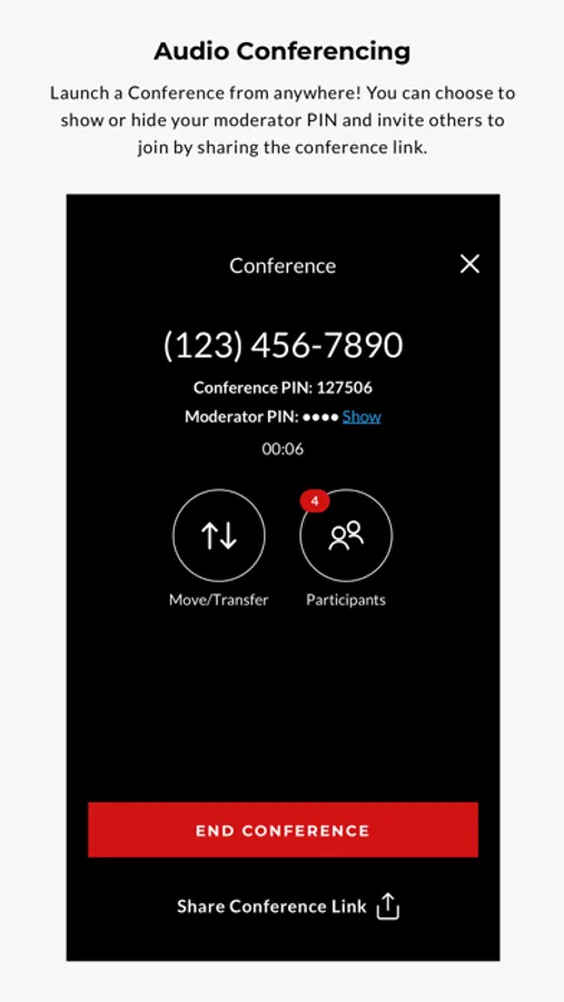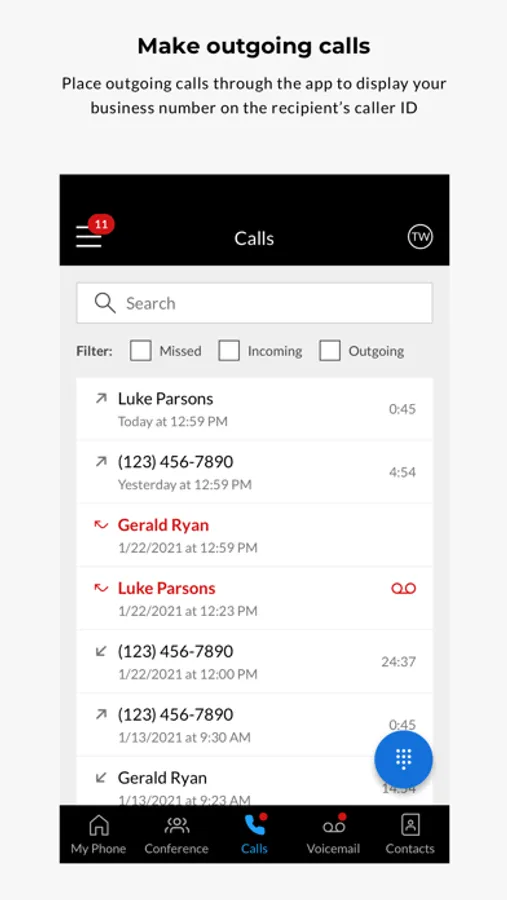 • Make outgoing calls through the app to display your business phone number on caller IDs