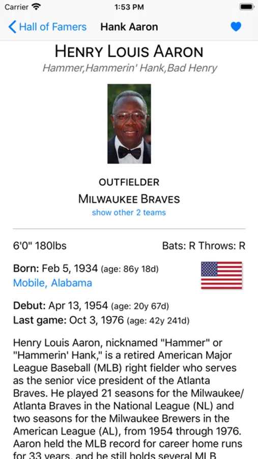 Embrace baseball history. Complete reference of 20k+ US Major League professional baseball players and teams since 1871.