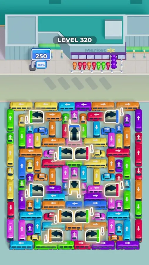 - Color Chaos: Navigate through a busy station packed with colorful buses and cars, all in need of sorting.
