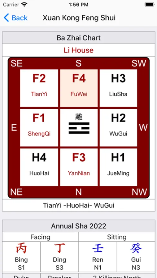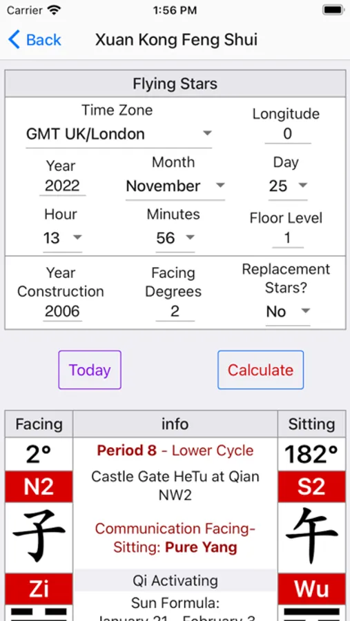 - Calculation the Flying Stars of the building with the option if you want to use Replacement Stars.