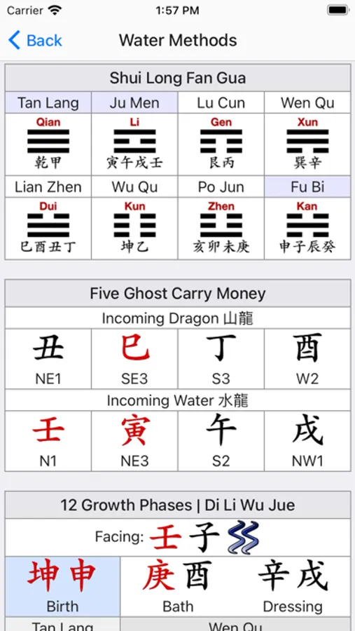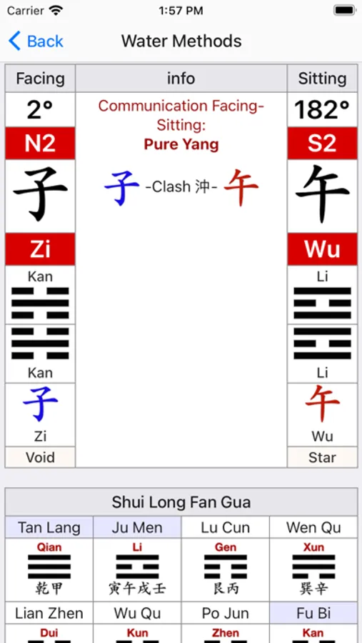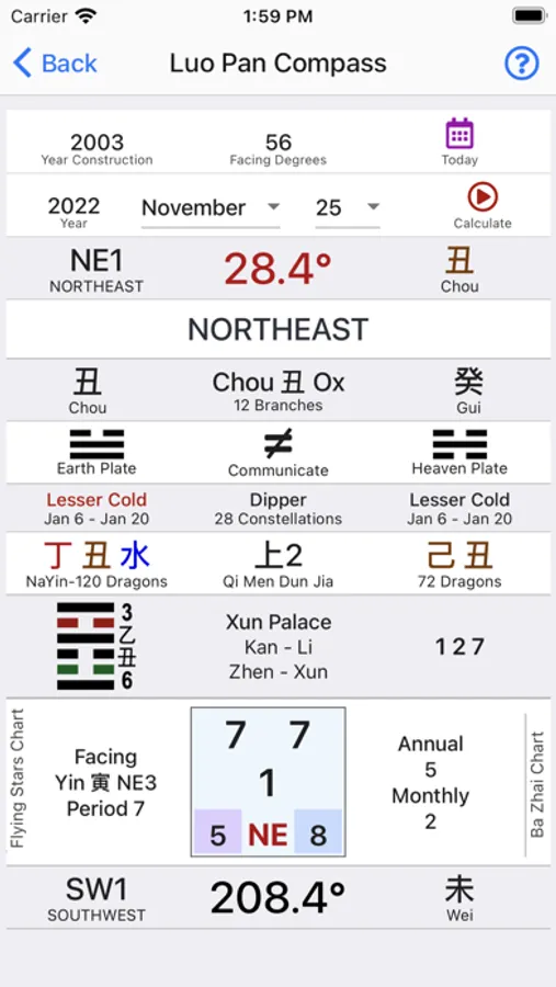 Just enter the Facing/Door and Water degrees and you will have all the information you need.