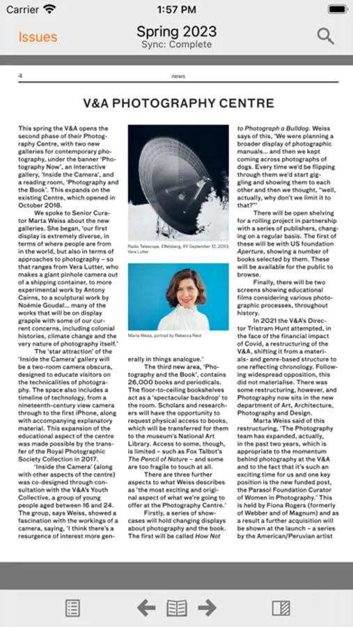 • Sync back issues to your device for offline reading (requires wi-fi).