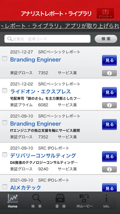 証券リサーチセンター(SRC)が発行するレポートを公表後タイムリーに閲覧することができます。