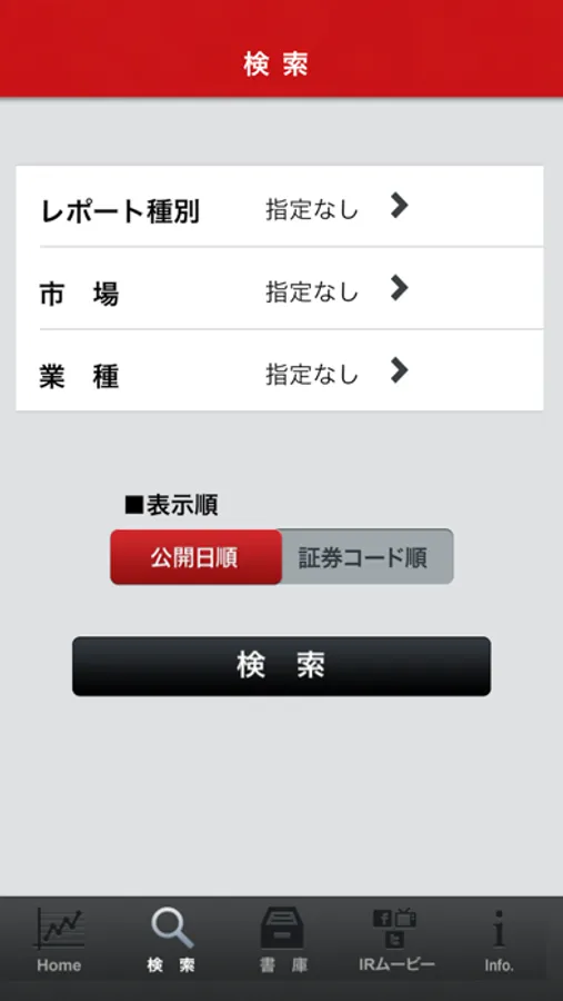 レポート種別、市場別、業種別によるレポート検索も可能。