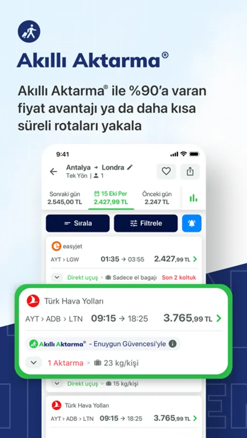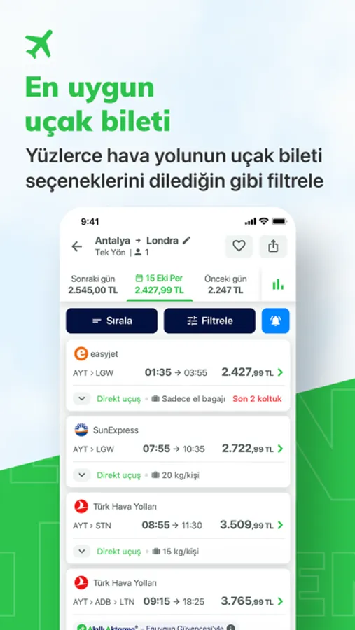 You can reduce the time you spent planning your trip with ENUYGUN’s advanced filtering options. With Price Graph you can view the most affordable ticket in one place while with Price Alert, which tracks affordable prices for you, receive notifications when the lowest-priced flight changes, and you can buy when the prices drop, or before increasing further.