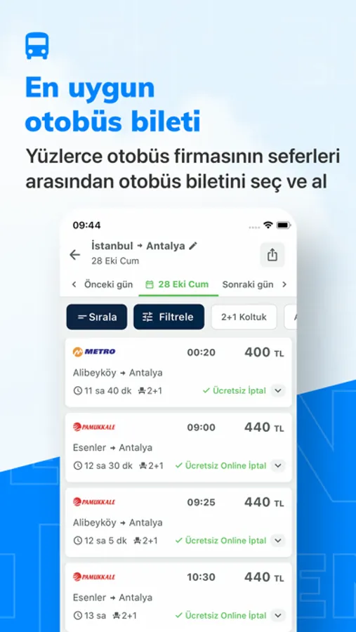 Flight tickets, bus tickets, hotel reservations, and car rental services are available in Enuygun at the same time!
