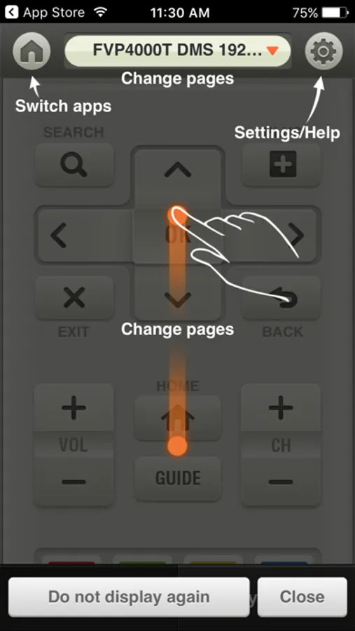 All buttons on the actual remote control are available. Drag upward and downward to see all buttons.