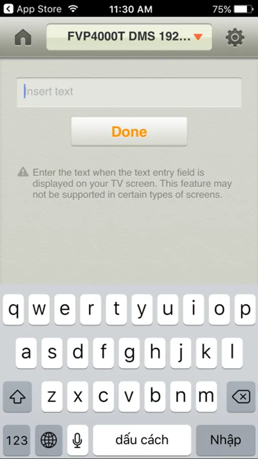 Full keyboard for typing in keywords for search, setting and other applications. (The keyboard of the iOS device is displayed.)