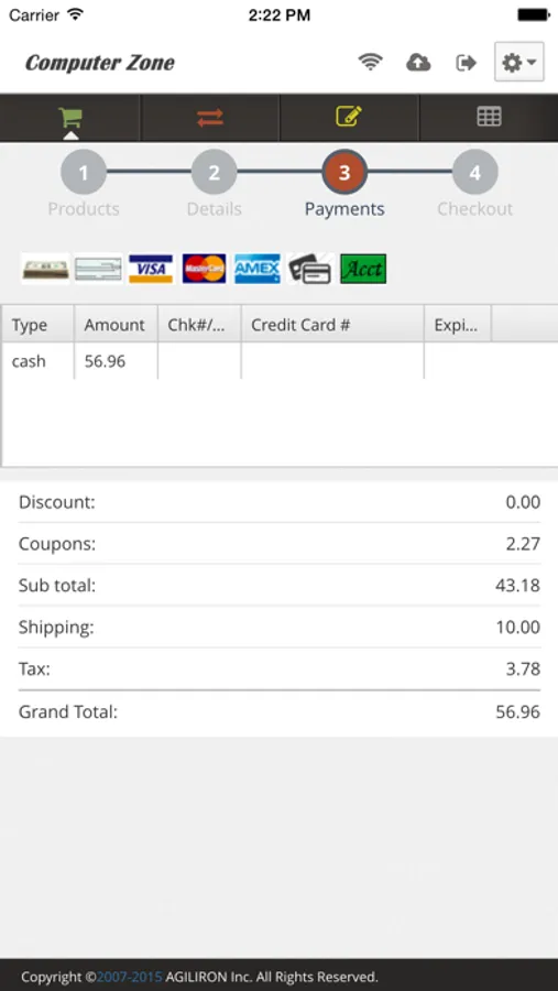 The Agiliron POS is a powerful, elegant and easy-to-use cloud-based iPad & iPhone Point of Sale (POS) system. As a component of the “Agiliron Multi-Channel Commerce Solution Suite”, it is quick to setup and enables businesses to leverage the end-to-end platform to “Sell More in More Place. But Manage in One”.