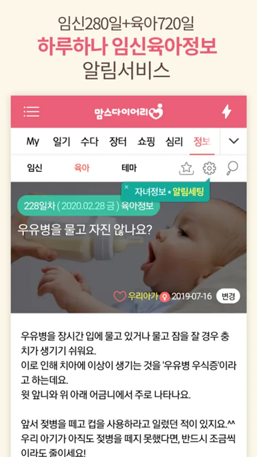 임신육아에 꼭 필요한 APP 하나라면 "맘스다이어리"를 써보세요.