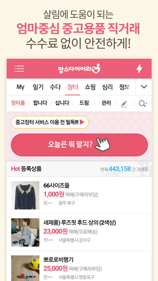 아이 키우며 집에 안쓰는 물건, 필요한 물건 사고 팔 수 있어요.