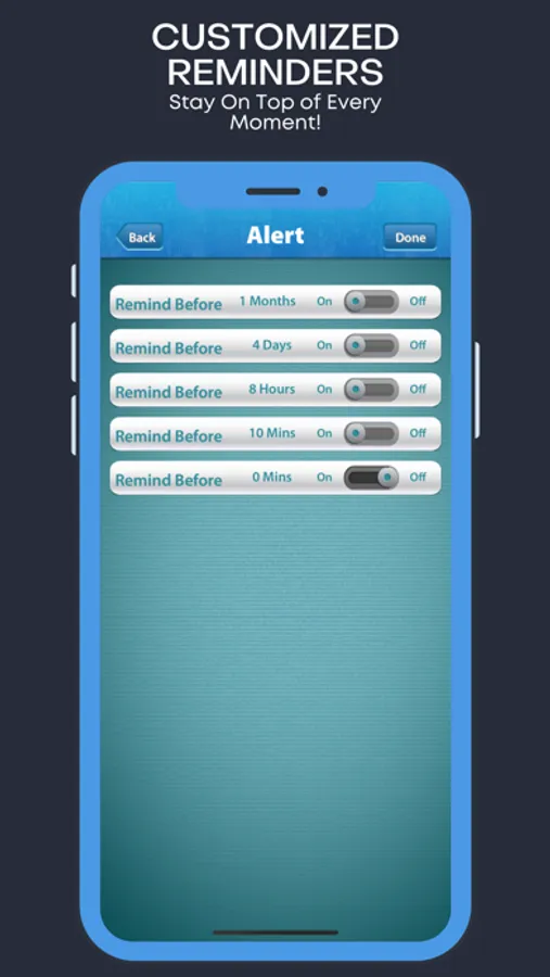 - Alert function “Remind me Before” possible to 5 alerts per Big Day