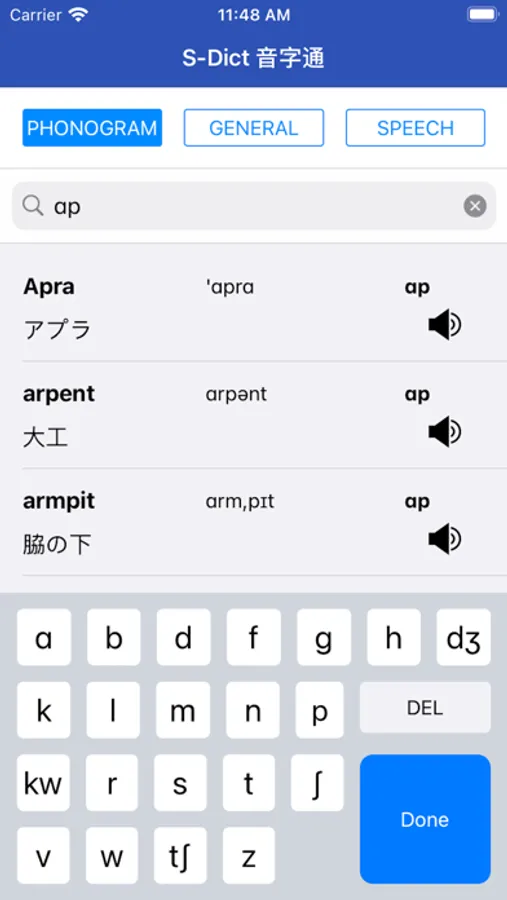 The secret of "S-dict Sound and Characters" that makes it easy for you to learn English? Exclusive patent!Phonological Learning English Retrieval System Different from the traditional 26 English alphabet query, S-dict Phonetic uses exclusive phonological retrieval, using syllable cutting, based on easy-to-understand syllable codes, so that you can easily master English pronunciation and the phonological association between words helps you memorize words effectively!