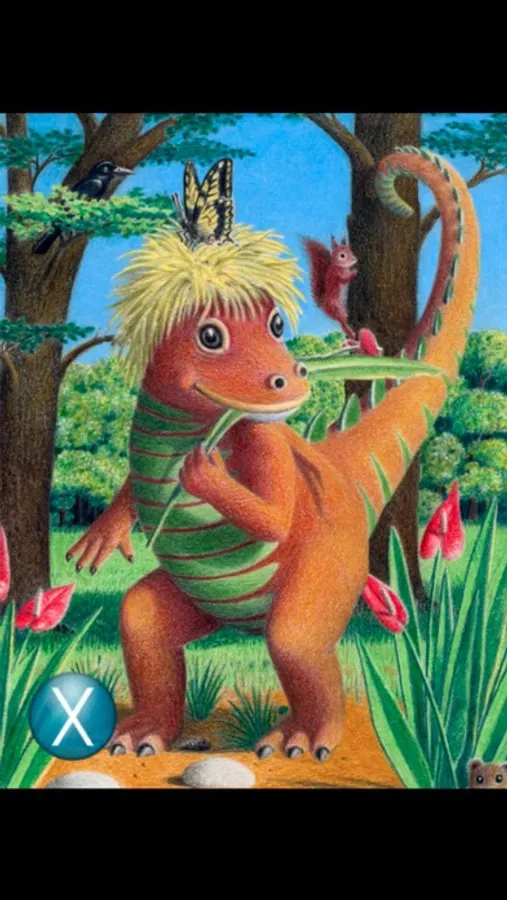 Activity begins with the melody of the dino “Xenegugeli". As the image of the animal is swiped, the relevant first letter is identified, both by name and the sound associated with it. By tapping twice on the image of the animal depicted, the user advances to the writing exercise. When the upper-case and lower-case version of the letter are written correctly, the animal becomes animated and emits a sound. A segment from a song in the relevant language then plays. The english version is sung by Clare de Lune.