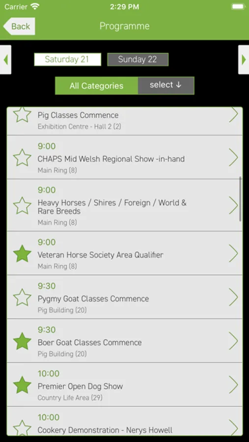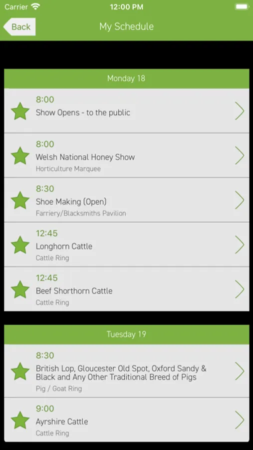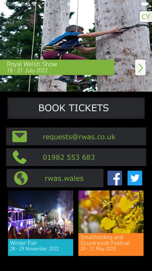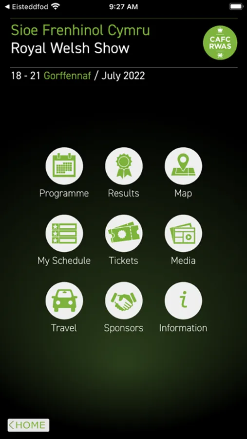 This is the Royal Welsh Agricultural Society's guide app. A description of its features are detailed below.