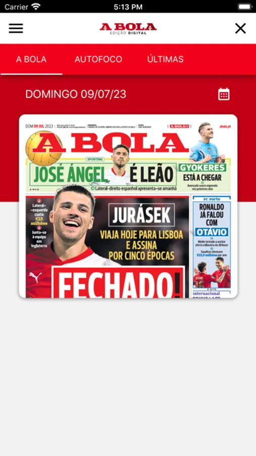 Subscreva a aplicação do jornal A BOLA.