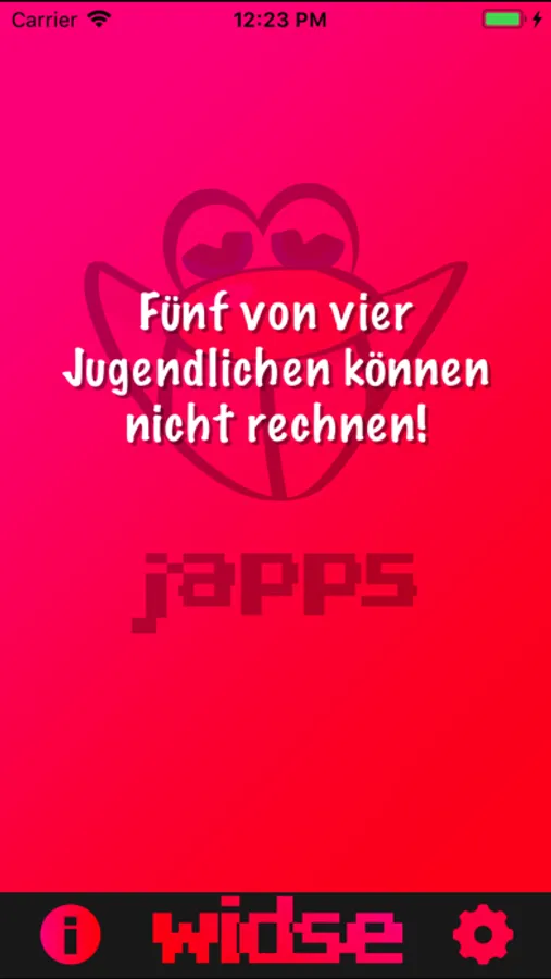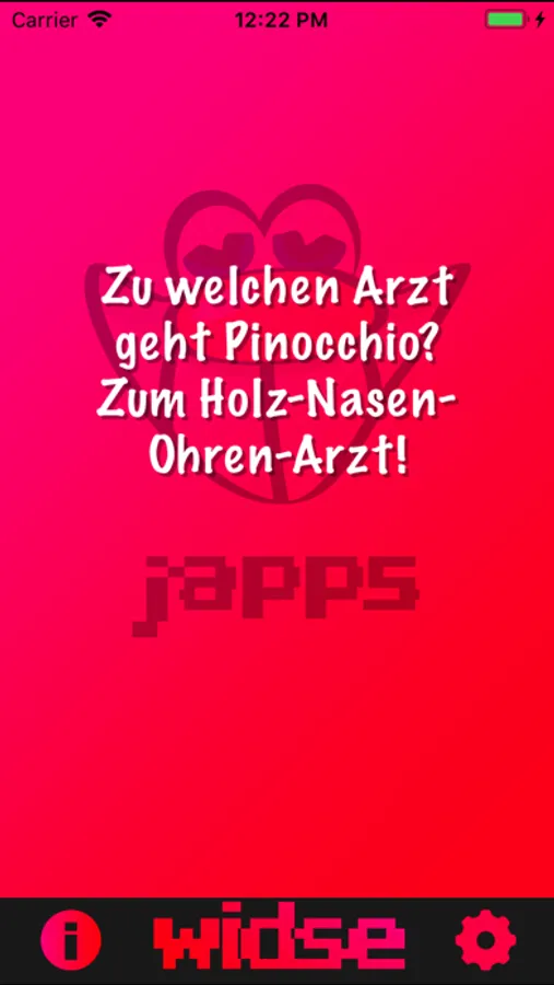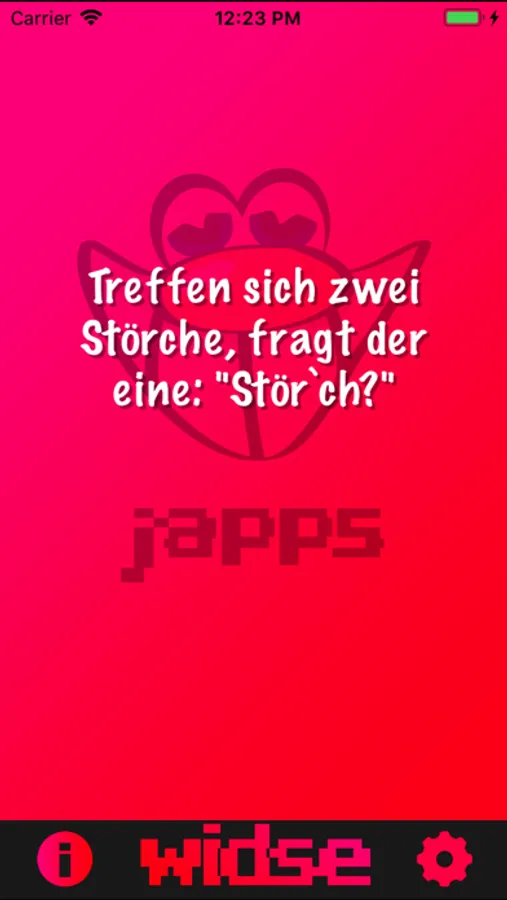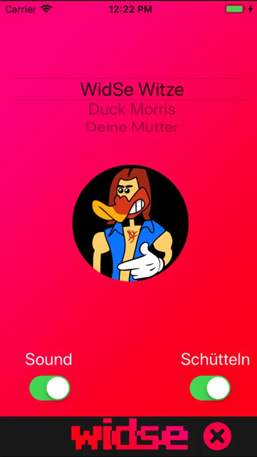 WidSe ist ein WidSe, ähm, Witze-App. Du kannst dir durch Schütteln des iPhones oder durch Druck auf den WidSe-Button in zufälliger Reihenfolge Witze anzeigen lassen. Der ideale Auflockerer für Partys oder Lauheimer in der Bar!