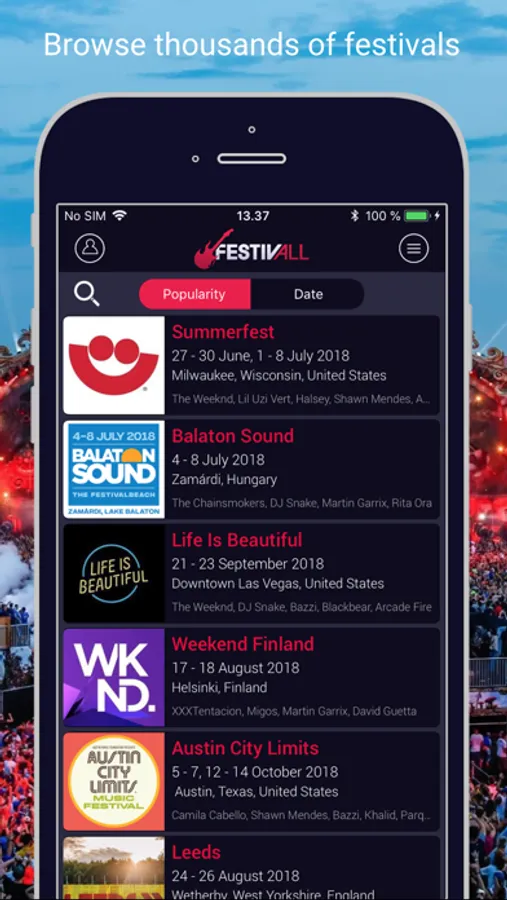 Remember yourself downloading a new app for every music festival you were going to attend and deleting it afterwards? Now you have all of them in FestivAll app.