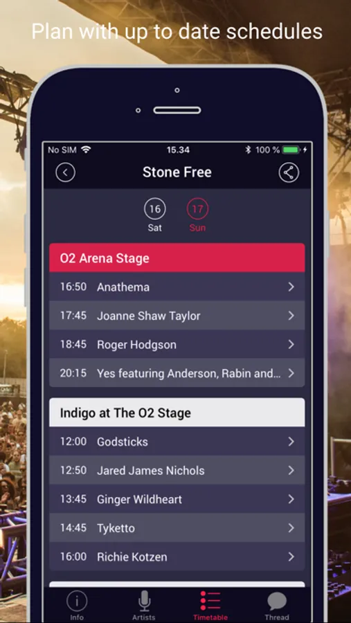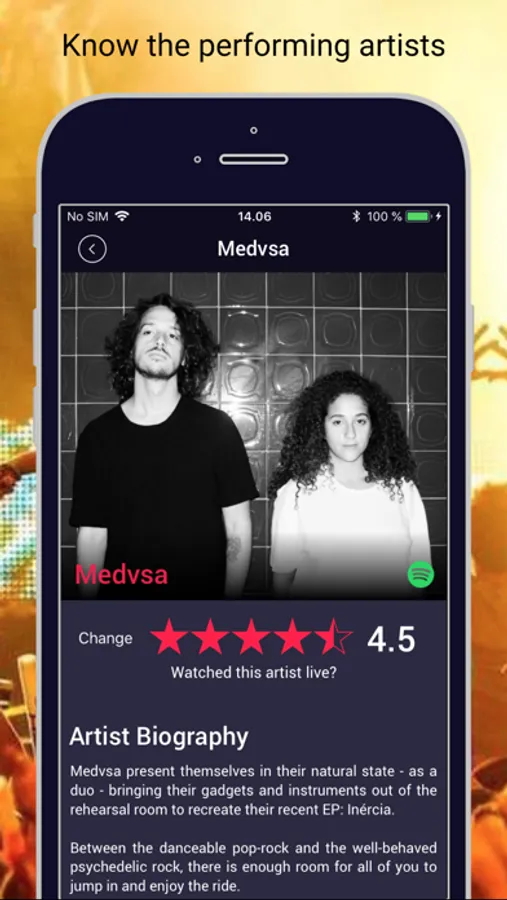 With the FestivAll app you will get a complete list of bands that are going to perform at the chosen festival. Find out if your favourites are playing and get to know new ones by checking their youtube videos and their music.