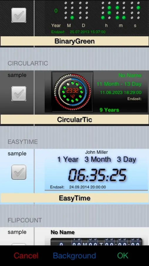Whether you set a countdown to a specific date or a timer to a specific time - you see the remaining time and get an idea on how much time is left. Everyone likes a different time-format. With this app you can choose between different display options including digital, analog, binary as well as other formats to meet everyones taste!