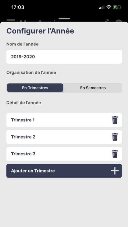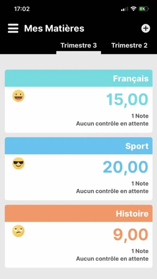 - Suppression des notes, profil ou matières par un simple slide depuis la droite de l'écran.