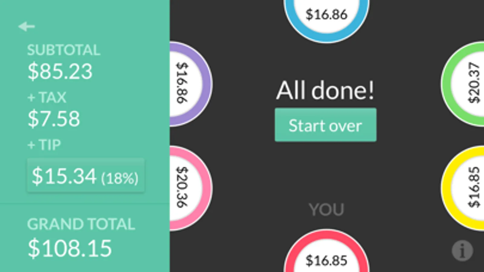 Add items and drag them right on to people's plates, and watch the totals update in real time. Figuring out who owes what has never been so simple and so fun.