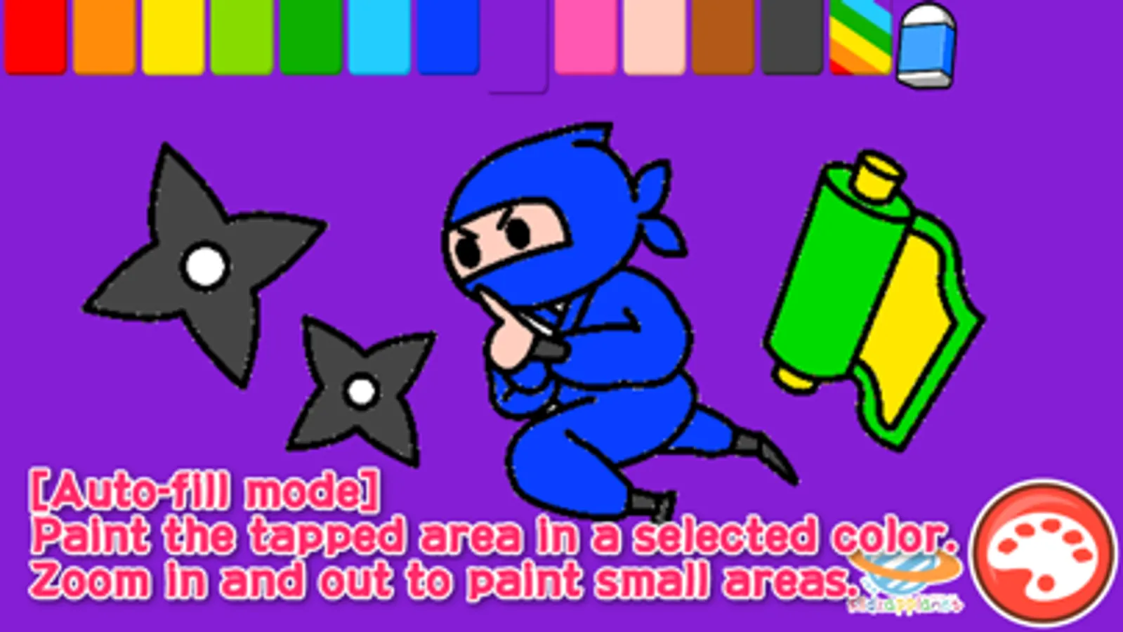 Tap a picture icon of an animal or a vehicle, next to the menu on the bottom right of the screen and start coloring.
