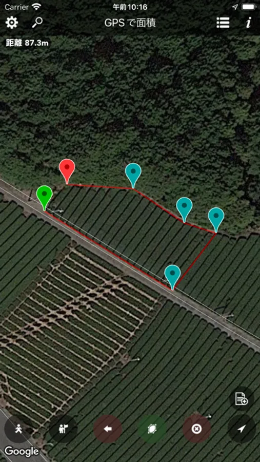 また、 画面は マップ が表示されていますので、地図にマークしていくだけで面積を計算できます。
