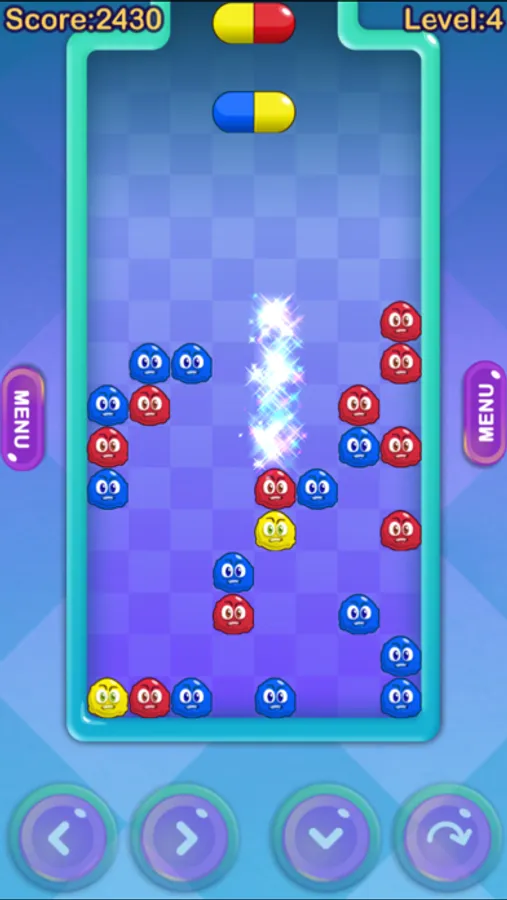 The goal is to remove all viruses from the screen. To do that you have to rotate and position the capsules on top of or alongside the viruses and other capsules so that there are at least 4 blocks with the same color next to each other.