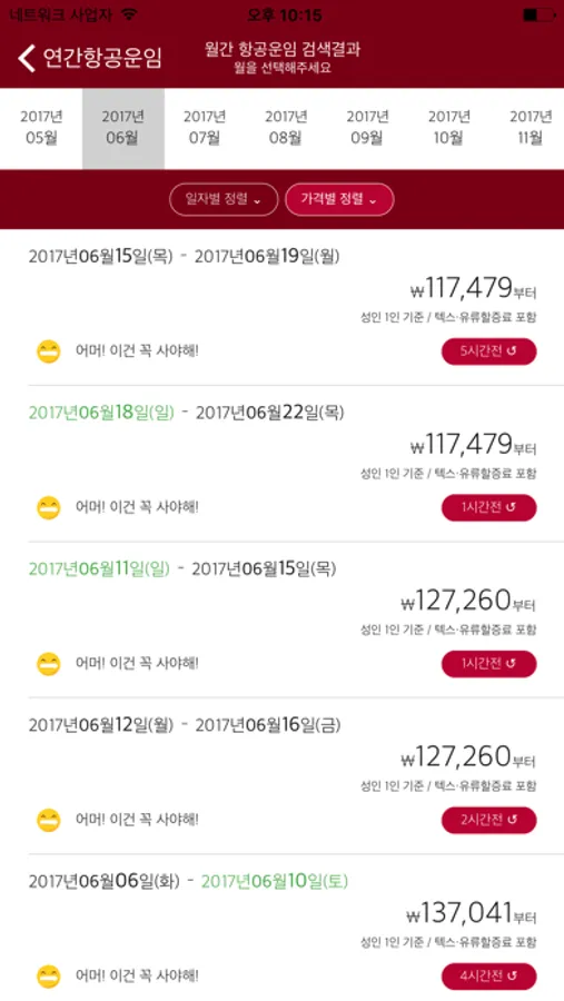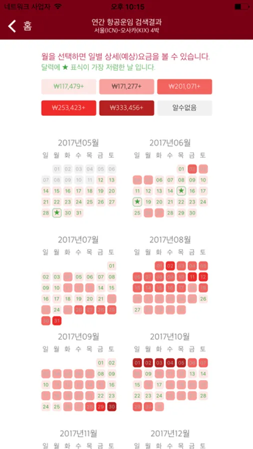 * 연중 저렴한 여행일정 찾기