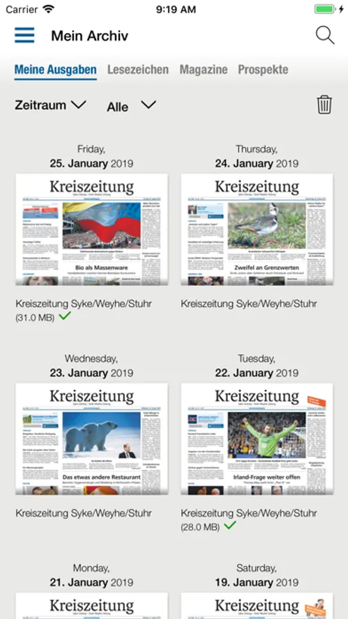 Es werden Ihnen nach dem Login sämtliche abonnierte Ausgaben angezeigt.