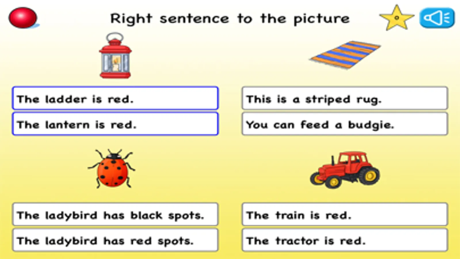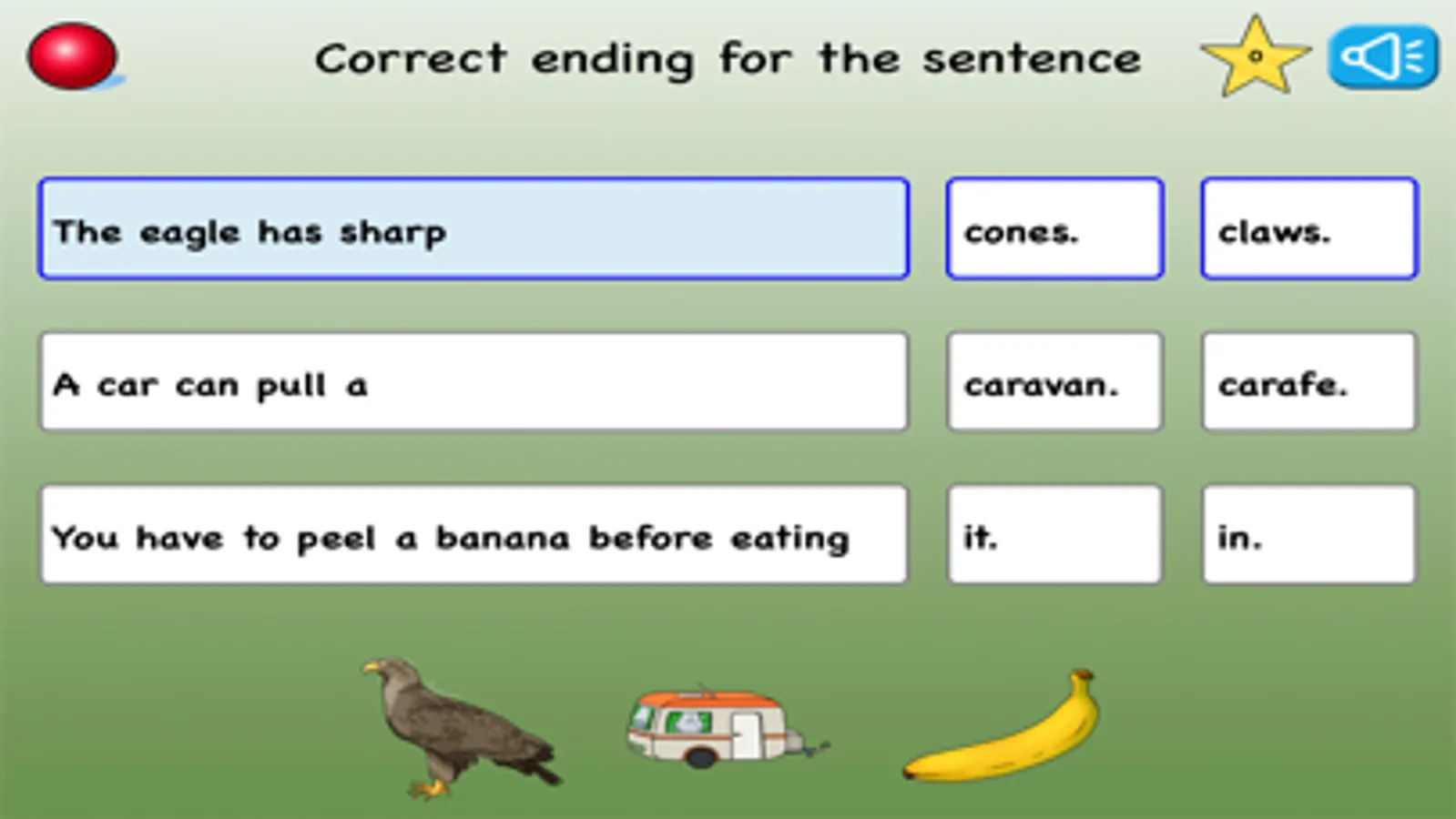 Choose the correct ending for the sentence by clicking on the correct word. The answer will be read out loud.