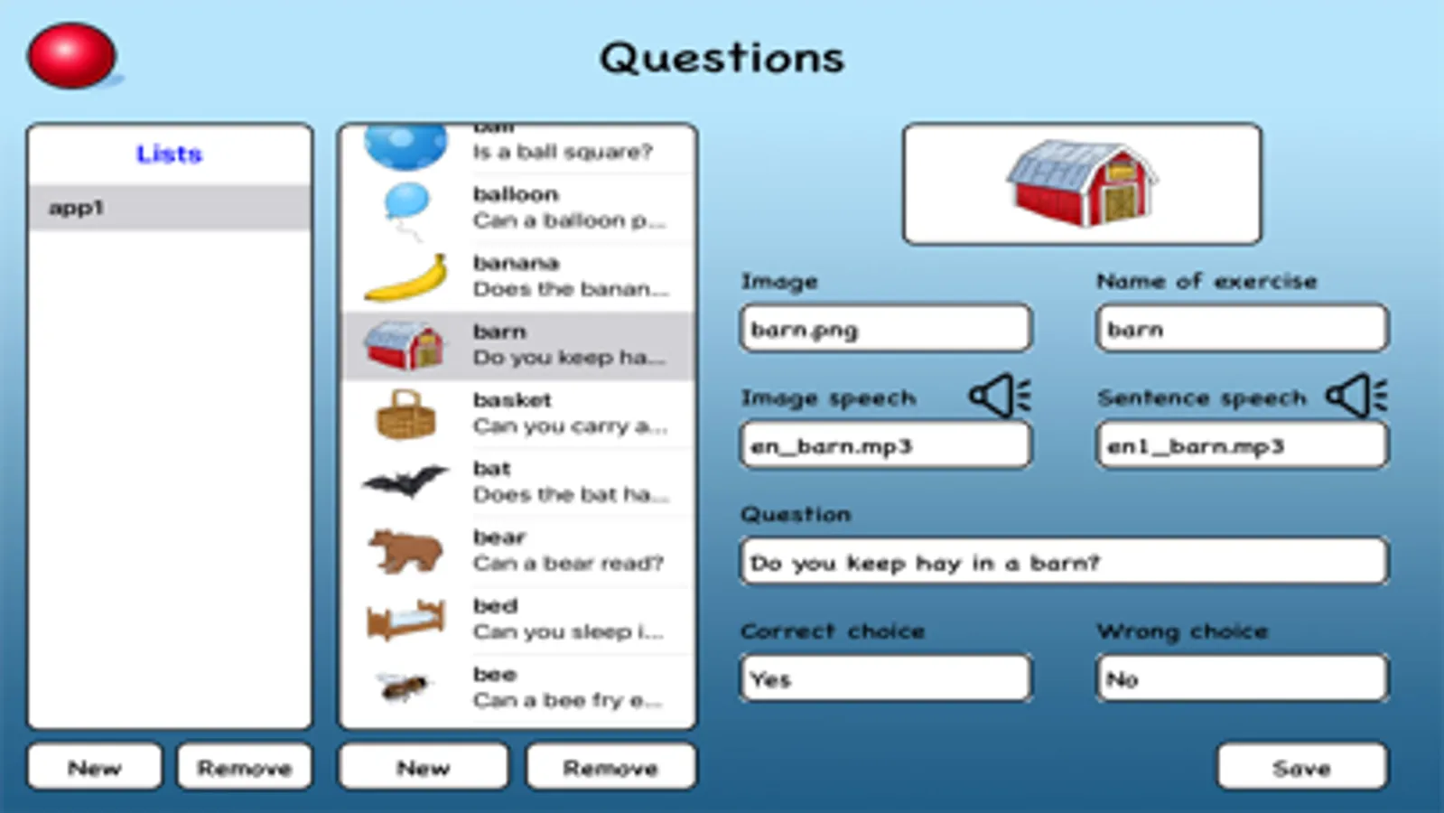 All exercises in Learning English - Words and Sentences can be suited to your needs. Use the editor to add, remove or change wordlists, exercises, photos, pictures, and/or speech and sounds.