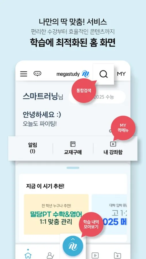 언제 어디서나 편리한 강의 수강! 모바일 학습 최강자 메가스터디의 스마트러닝앱을 만나보세요.