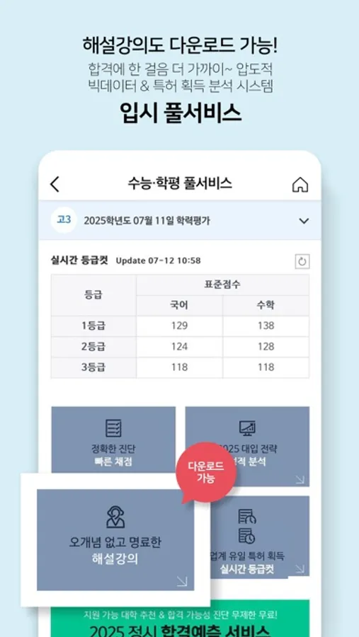 나를 응원해 주는 메가쌤들의 캐스트, 명문대 선배들의 멘토링, 입시 풀서비스까지