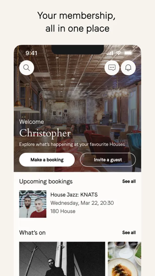 Book tables, events, screenings, fitness classes, and bedrooms in the Houses.