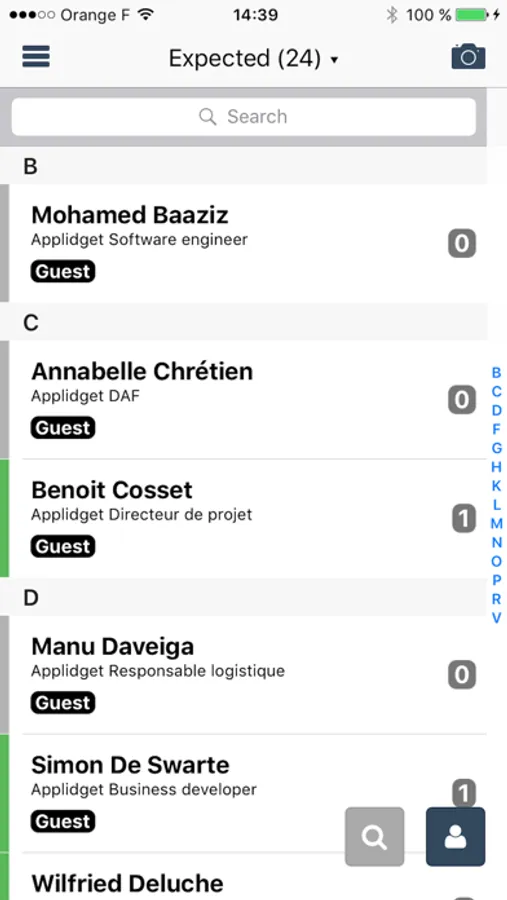 With Eventmaker Check-in you can both scan QR Codes of your guests, but also check-in through the guest list on this application.