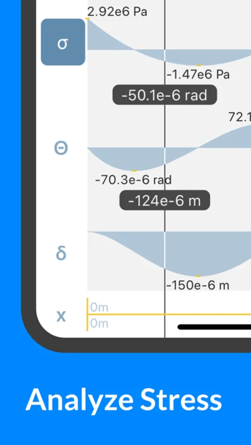 Obtain internal bending and shear stress diagrams in addition to shear, bending, and deflection diagrams. The internal stresses can be visualized along the length of the beam as well as along the vertical axis of the cross section.