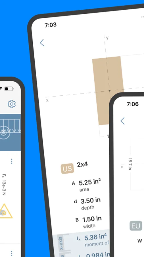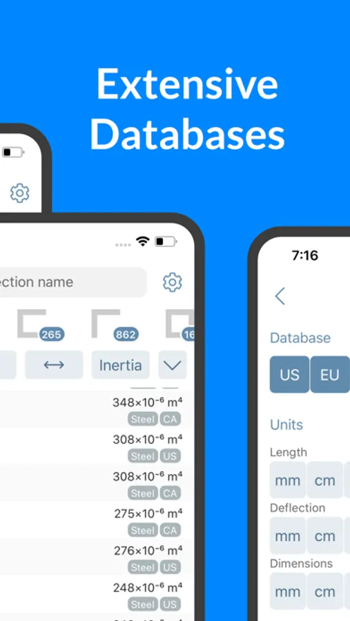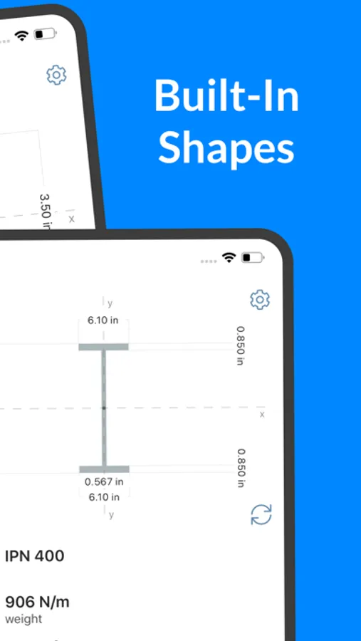 Edit built-in cross sections. Moment of inertia and area values are automatically calculated and applied to the rest of the beam calculations.