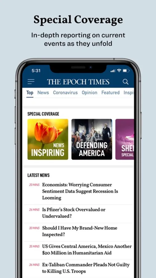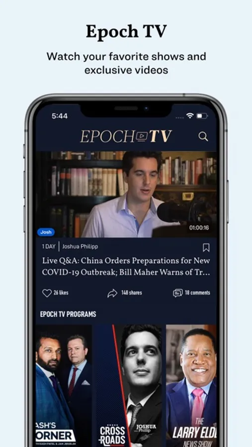 With The Epoch Times app you will have access to all of our digital content, including in-depth coverage of US politics, reporting on China. You will also get access to our premium shows such as American Thoughts Leaders, Crossroads, China in Focus, Facts Matter, The Larry Elder Show, Health Care, as well as commentaries and documentaries on issues that matter. There is special coverage updated regularly on trending topics.