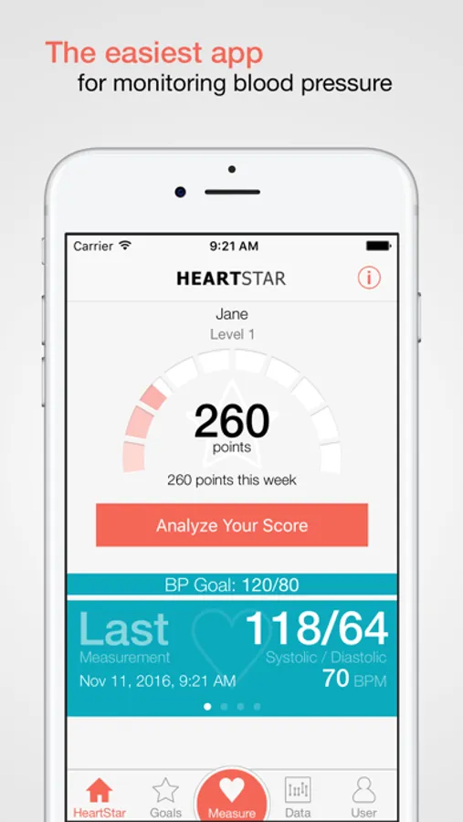 • Collect HeartStar points! When you record a new measurement, you will be rewarded with points based on how that measurement helps you reach your goals. HeartStar points give you a new way to measure your overall progress. A steady increase in points means you're consistently recording your blood pressure and making good progress toward your goals. Challenge yourself to reach the next level!