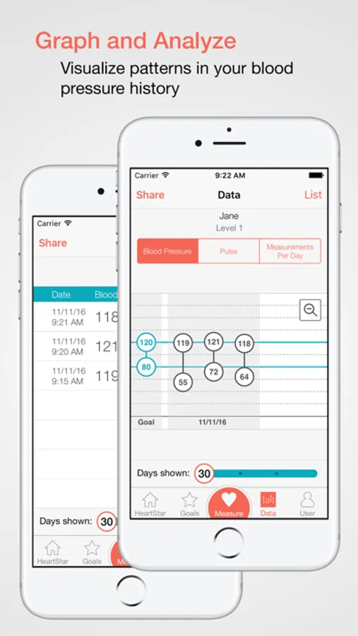 • Visualize patterns in your blood pressure history to help you understand your activity patterns.